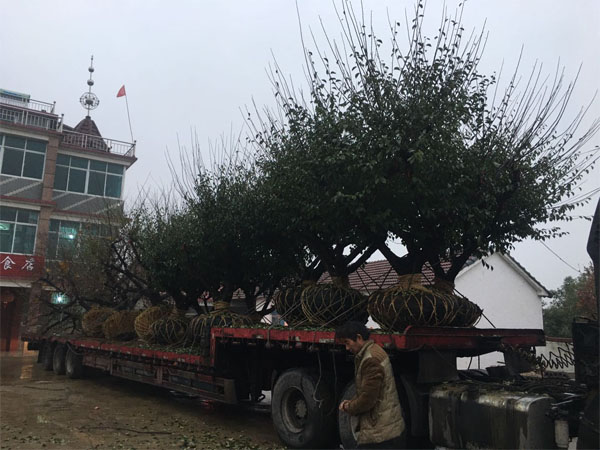 全友紅梅基地工人冒雨工作 長興全友紅梅基地挖出來的帶土紅梅樹標準:20公分紅梅樹帶130厘米土球;30公分紅梅樹帶150厘米土球。紅梅樹土球采用二道工系包裝,D一道先用草繩包扎、D二道用太陽包裹包扎,確保長途運輸土球不變形、不破裂、保水份提高成活率,裝吊采用Z業(yè)的隨車吊進行裝車確保紅梅樹枝條無擦傷、斷裂。每道工序都以高標準執(zhí)行。得到了甲方及施工單位的一至好評,提升了長興全友苗木場的知名度。